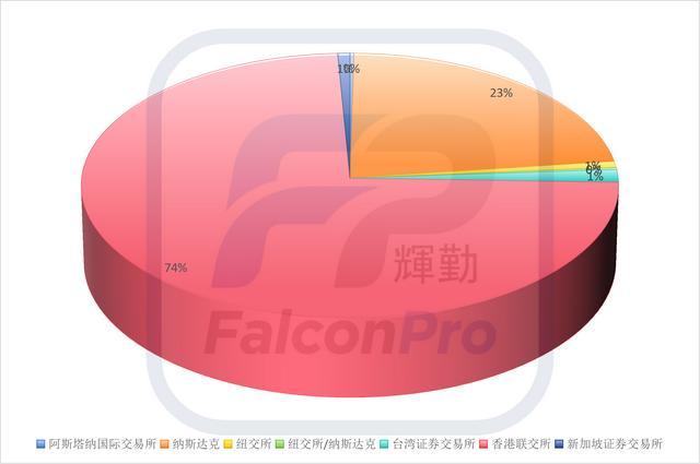 已备案企业分布于全球6个交易所,其中,港交所与纳斯达克是最主要的两大上市目的地,合计占比超过94%,反映出内地企业境外上市高度集中的区域特征。