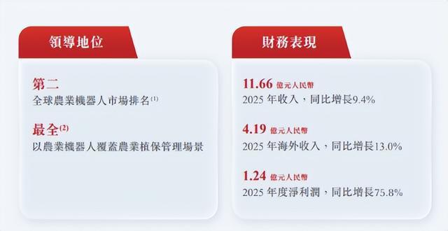 3月26日晚间,农业机器人“独角兽”广州极飞科技股份有限公司(下称“极飞科技”)更新港股招股书,并披露2025年业绩:净利润同比大增76%,海外收入占比升至36%。