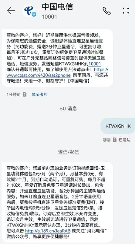 日前,河北电信宣布,针对上述三个地区的电信用户,提供为期两个月的免费卫星电话。